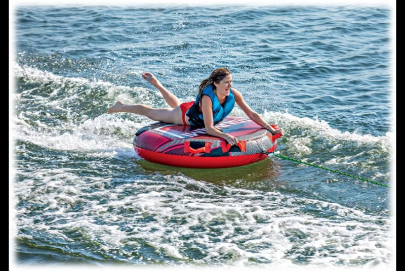 Whether youre a seasoned veteran or its your first time on the water, the XPS Tsunami 1 Towable Tube caters to the energy addicts in all of us. This 56 XPS 1-rider tube brings great fun for better time on the water. 4 foam-filled handles allow various riding positions, with neoprene knuckle guards for a more comfortable ride. Get out on the water quickly and back again at the end of the day thanks to the quick-inflate/deflate Boston valve. EZ Connect provides fast, secure hookup and better towing control during the ride. 56 (142 cm) long. Max Wt. Cap: 170 lbs.